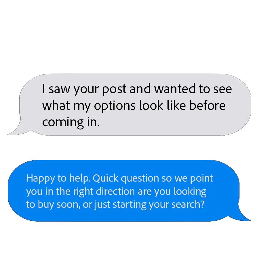 Educational messages, reminders, and soft follow-ups keep your dealership top of mind.